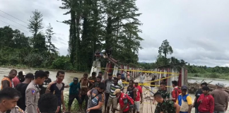 TNI-Polri Bersama Warga Arsotami Perbaiki Jembatan Rusak di Perbatasan RI-PNG