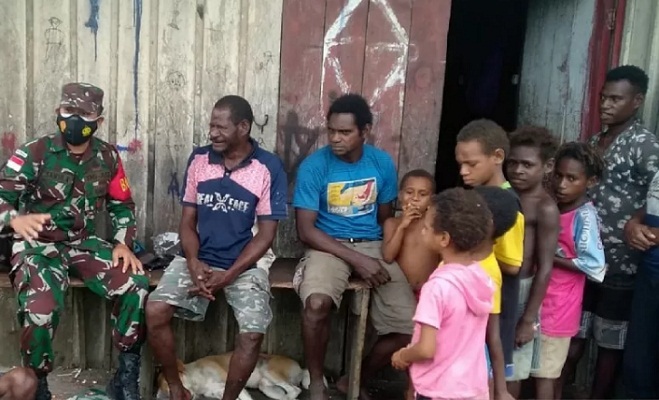 Asmat – Aparat TNI Babinsa Koramil 1707-20/Suator Kodim 1707/Merauke melakukan sosialisasi pentingnya protokol kesehatan dan vaksinasi untuk mencegah penularan COVID-19 untuk warga di Kampung Binam, Distrik Suator, Kabupaten Asmat, Papua, Kamis.