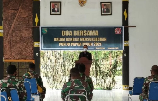 Komandan Kodim 1711/Boven Digoel Letkol Czi Daniel Panjaitan dalam keterangan diterima, Minggu, mengatakan kegiatan doa bersama sebagai bentuk dukungan TNI (Kodim 1711/BVD) untuk menyukseskan Pekan Olahraga Nasional (PON) XX 2021 yang digelar di Papua.